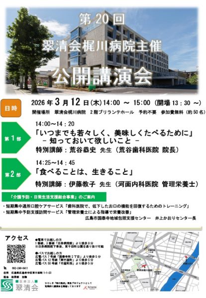 第20回翠清会梶川病院主催 公開講演会開催のお知らせ
